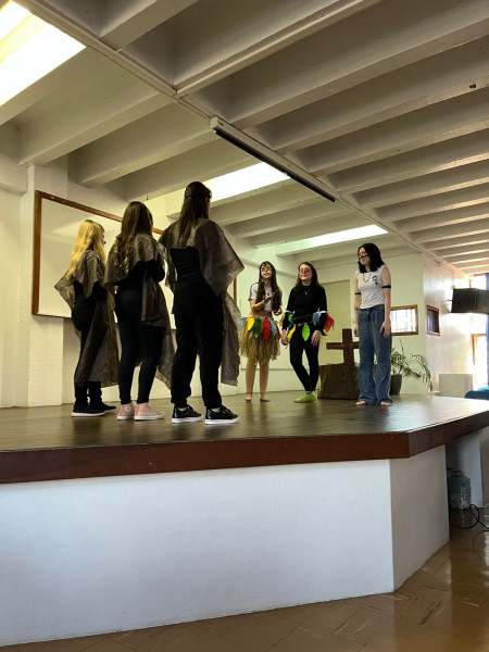 O processo, no entanto, não se restringiu à confecção dos dioramas. A proposta envolveu também a organização de roteiros de encenação teatral, integrando literatura, arte e expressão cênica. Os alunos elaboraram diálogos, ensaiaram cenas e buscaram transmitir a atmosfera do período histórico por meio da dramatização. Cada grupo vivenciou intensos momentos de preparação, que exigiram colaboração, disciplina e dedicação nos ensaios.