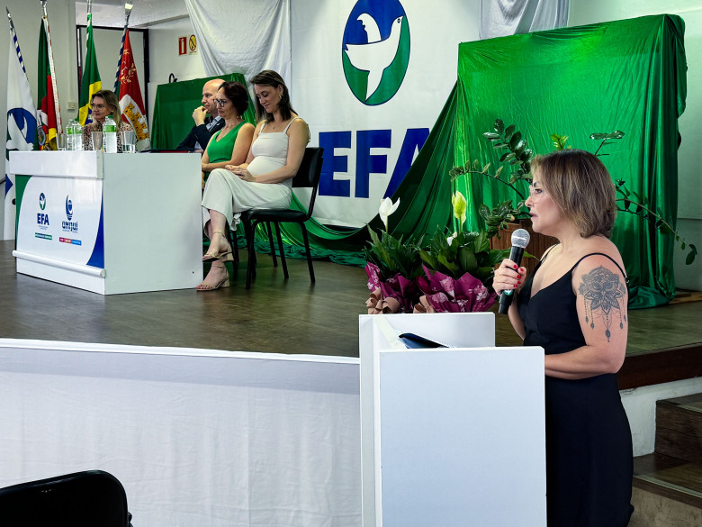 Em seu pronunciamento de despedida, a professora Maristela Heck celebrou os avanços conquistados, com destaque para a consolidação dos projetos pedagógicos e o crescimento institucional. "Alcançamos o maior número de matrículas dos últimos dez anos. Esse dado é o testemunho de que a comunidade confia na educação que entregamos e o reflexo do trabalho coletivo de todos os gestores que passaram pela EFA", afirmou Maristela.