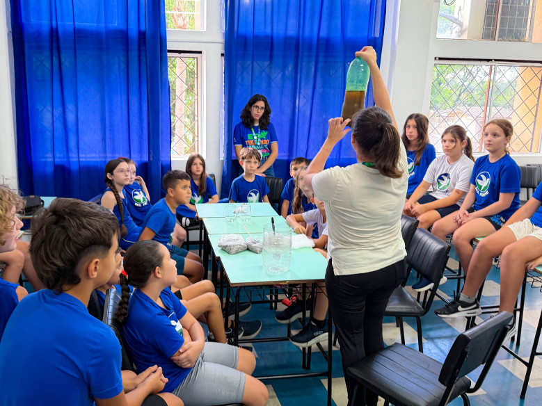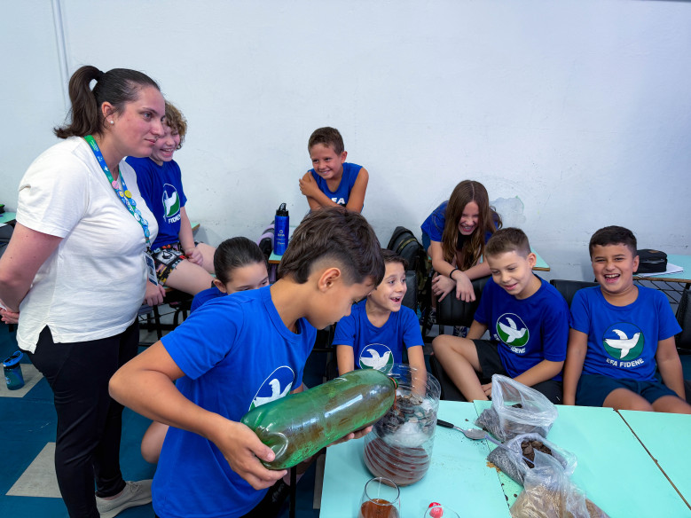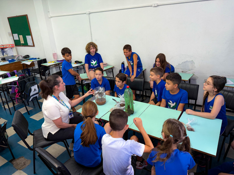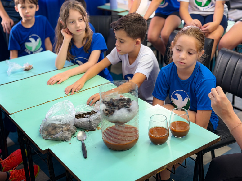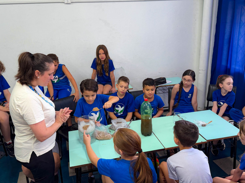 Na última quinta-feira, dia 26, os estudantes da turma B42 dos Anos Iniciais do Centro de Educação Básica Francisco de Assis (EFA) trocaram os livros por materiais recicláveis em uma aula marcada pela experimentação. Sob a orientação da professora Danuse, a turma participou da confecção de filtros de água caseiros utilizando garrafas PET, transformando a sala de aula em um verdadeiro laboratório de consciência ambiental.
