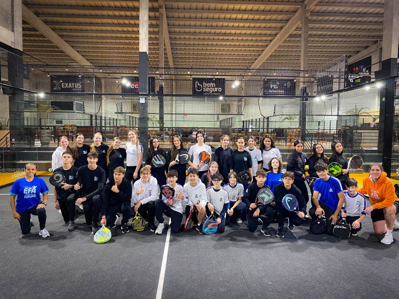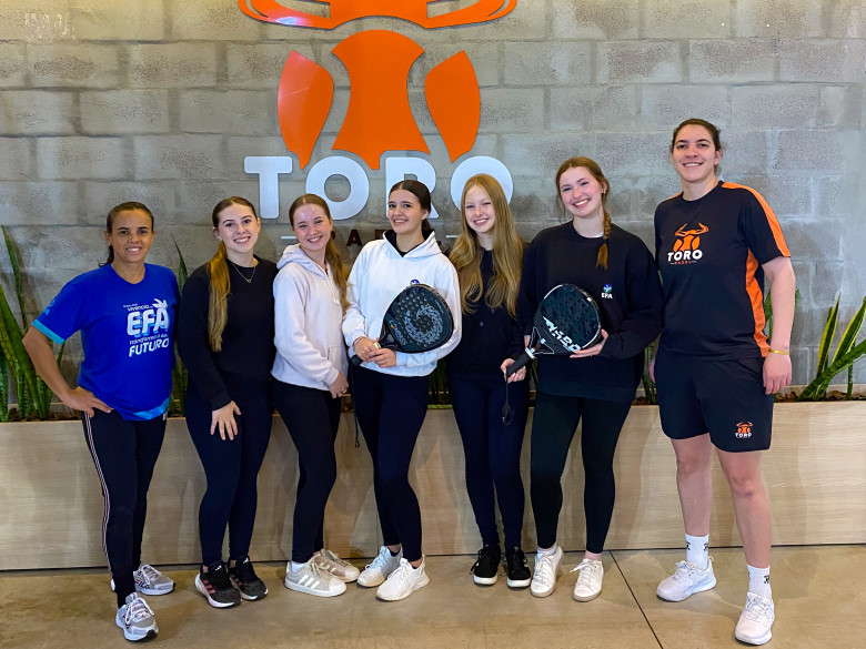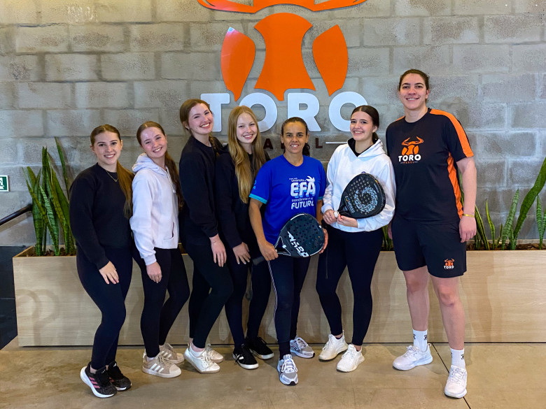 Na manhã do dia 27, os estudantes do nono ano do Centro de Educação Básica Francisco de Assis (EFA) trocaram a sala de aula pelas quadras do Toro Padel. O projeto teve início nas aulas de Educação Física, sob a orientação da professora Silvana dos Anjos Prates Marchioro, onde os jovens realizaram pesquisas teóricas sobre a história e as regras fundamentais do padel. Após dominarem os conceitos em sala, a turma participou de uma manhã de imersão na infraestrutura do Toro Padel, onde puderam aplicar as técnicas estudadas e vivenciar a dinâmica do esporte na prática com a professora Silvana Schmitz Theis, que atua no Toro Padel.