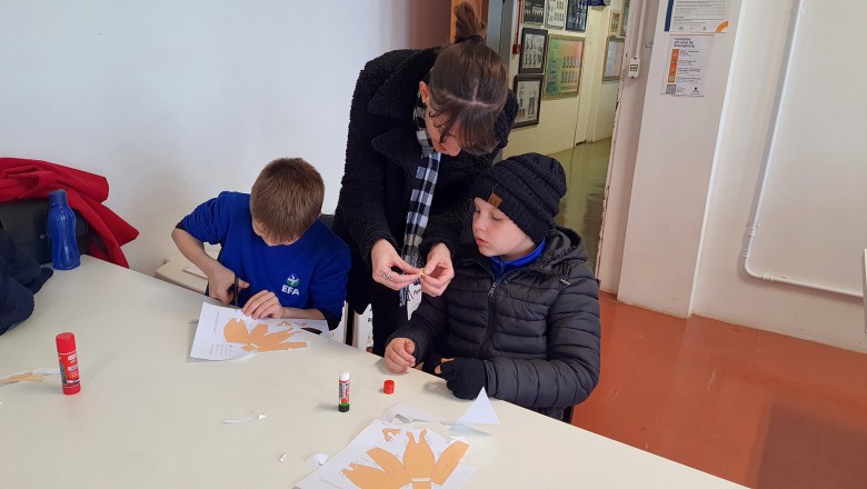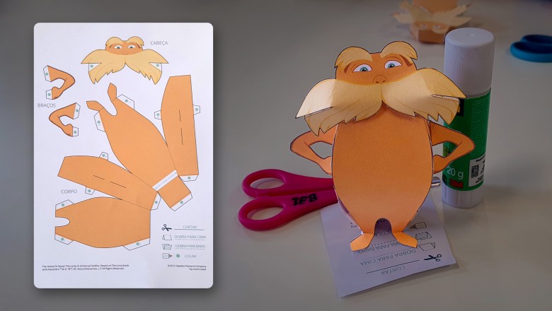 Para as crianças, essa técnica é excelente para melhorar a concentração, aguçando a imaginação enquanto exercita o foco, além de desenvolver a coordenação motora ao exigir o cuidado com cada ação ou movimento sobre a peça. É um momento para o indivíduo testar suas habilidades com diferentes processos, desde o recorte preciso da folha até a pressão aplicada durante a colagem. A partir de um molde impresso em uma folha de desenho, os estudantes puderam recortar, dobrar e colar as partes para formar a miniatura tridimensional do personagem Lorax.