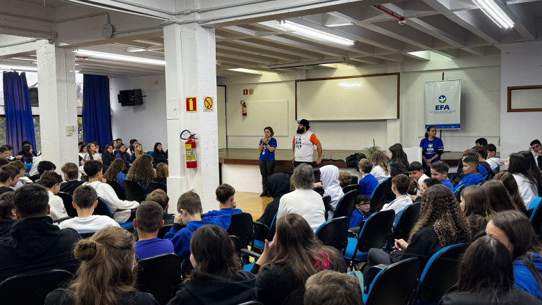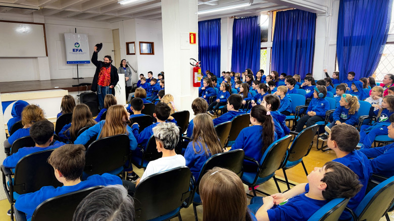 O segundo semestre começou com tudo na EFA. Para marcar esse recomeço, a escola organizou uma atividade divertida com o Cadagy, proporcionando um momento de descontração e integração para todos os estudantes do Ensino Fundamental e Ensino Médio. Já a Educação Infantil foi recebida com muita música e alegria pela professora Agnes Folck.