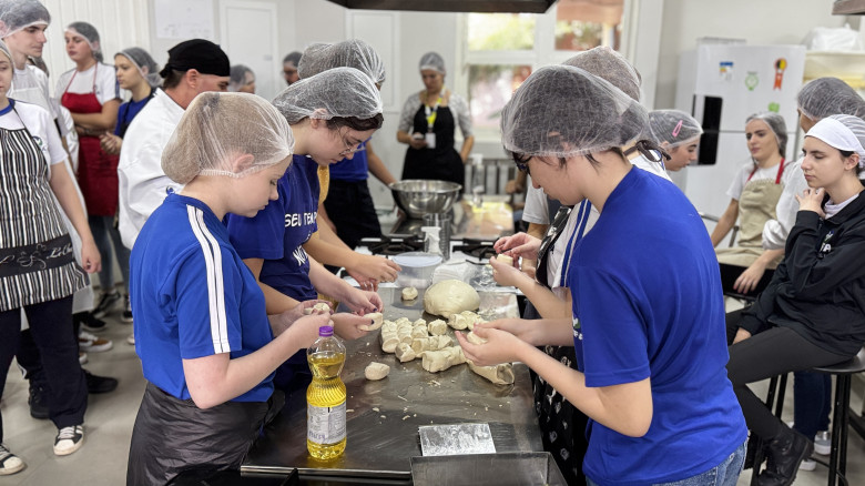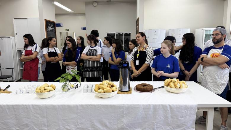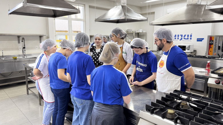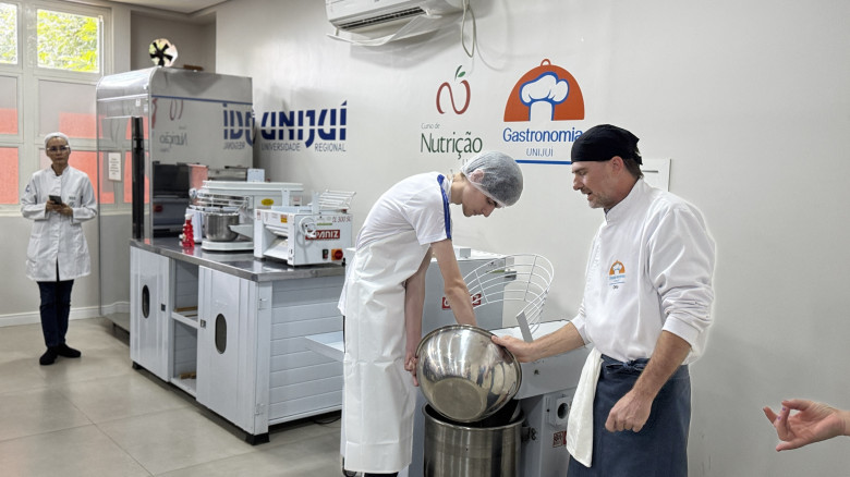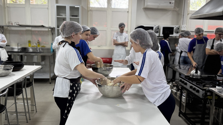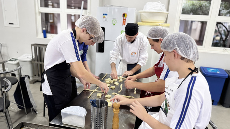 Na última quinta-feira, 16.05, a turma 211 do Ensino Médio vivenciou nos Laboratórios de Gastronomia e Nutrição da Unijuí atividades práticas sobre processos fermentativos aplicados à produção de alimentos. Na ocasião, os estudantes executaram algumas receitas, acompanhados de professores e alunos do Curso de Gastronomia, um estudo que ampliou aprendizagens e contribuiu no processo de formação dos estudantes. O momento interdisciplinar foi preparatório para o desafio gastro empreendedor que acontece no final deste ano, tendo como propósito apresentar para uma banca um produto elaborado pelos alunos, respeitando todos os critérios pré estabelecidos.