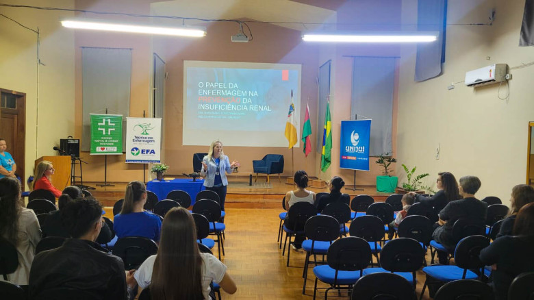 Já a médica nefrologista Dra. Maria Isabel Leszczynski Dutra abordou o papel essencial da enfermagem no cuidado a pacientes com insuficiência renal, destacando a atuação dos enfermeiros como essencial no acompanhamento, orientação e acolhimento desses pacientes, promovendo autocuidado e qualidade de vida.