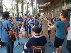 O Grêmio Estudantil Chico Mendes (GECOM) do Centro de Educação Básica Francisco de Assis (EFA), promoveu no último sábado, 18/03, um evento especial de integração e Acolhida para os Alunos e Famílias da Escola. A animação da manhã foi por conta do Maquinário Sonoro, banda composta pelos músicos João Pedro Van Der Sand, Tiago Sommer e Giovani Dressler, todos egressos da EFA, completa ainda a banda André Gottschefski. O GECOM tem por tradição promover este tipo de evento artístico e cultural visando fomentar a cultura e a integração entre os alunos neste importante momento de inicio de ano letivo. Na oportunidade as representantes do Grêmio Estudantil, Giovana Brito e Laura Scherer, aproveitaram para dar boas vinda a todos os alunos da EFA e ainda informar as atividades planejadas pela diretoria 2015/2016 para o primeiro trimestre. Segundo a vice-diretora Maria do Carmo “ o momento musical de acolhida foi especial, envolvendo os estudantes desde o 1º ano do Ensino Fundamental até 3º do Ensino Médio, além da participação das famílias que puderam curtir boa música junto aos filhos e professores da escola. A EFA se orgulha de ser uma instituição de ensino que fomenta a cultura e incentiva as diferentes formas de comunicação e expressões”. . |