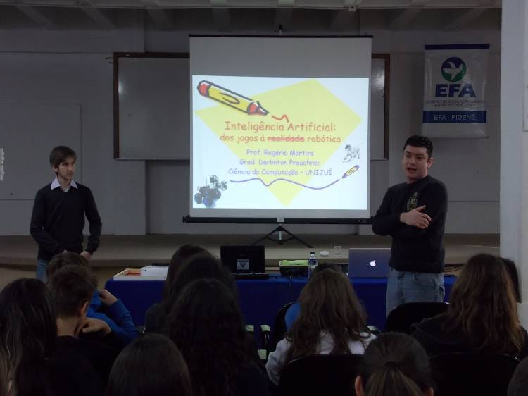 O terceiro ano do Centro de Educação Básica Francisco de Assis – EFA realizou uma atividade diferente nesta última quarta feira, 19 de novembro. A turma foi até o lago do CÂMPUS Unijuí, orientada pelo professor Marcos Maggio, testar uma embarcação que foi construída durante as aulas de Educação Física nesse último Semestre. O experimento teve inicio com a elaboração do projeto do barco e toda a engenharia que demandou estudos, pesquisas e cálculos, assim como todo um processo físico envolvido, para a projeção do mesmo e sua funcionalidade. Esse trabalho faz parte do projeto atividades físicas e esportivas junto à natureza, o qual também foi desenvolvido a proposta do acampamento orientado que aconteceu dias 26 e 27 de setembro na Fonte Ijuí, onde a turma desenvolveu atividades como com Rapel, Orientação diurna e noturna, Trilhas e outras atividades. Segundo o professor Marcos, essas atividades são fundamentais no processo de ensino aprendizagem pelo fato dos alunos vivenciarem a emoção de todo o conhecimento construído em sala de aula, isso permite varias conexões entre o que se aprende e se constrói com o mundo que o cerca, desse modo surgindo diversas possibilidades de aprendizagem. O barco foi construído basicamente com garrafas PET, taquaras e cordas. A atividade foi acompanhado pelos Professores Marcos Maggio e Samir Kreme da EFA, e também por Acadêmicos do Curso de Educação Física da UNIJUÍ que auxiliaram no monitoramento da atividade. O trabalho foi concluída com êxito, sendo que a embarcação suportou a lotação máxima de oito pessoas.