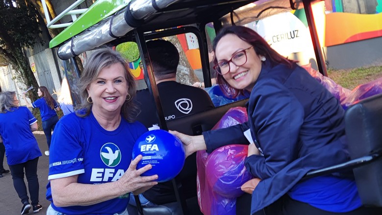 Na última sexta-feira, 13, a EFA promoveu na ExpoFest Ijuí brincadeiras e entrega de brindes em frente à Casa da Unijuí, como uma ação da campanha de matrículas 2024. A ação também contou com a participação da Cia Cadagy - Corpo e Movimento. O público também teve a oportunidade de preencher cupons para participar do sorteio de prêmios que será realizado no dia 24 de outubro, pela Rádio Unijuí FM.