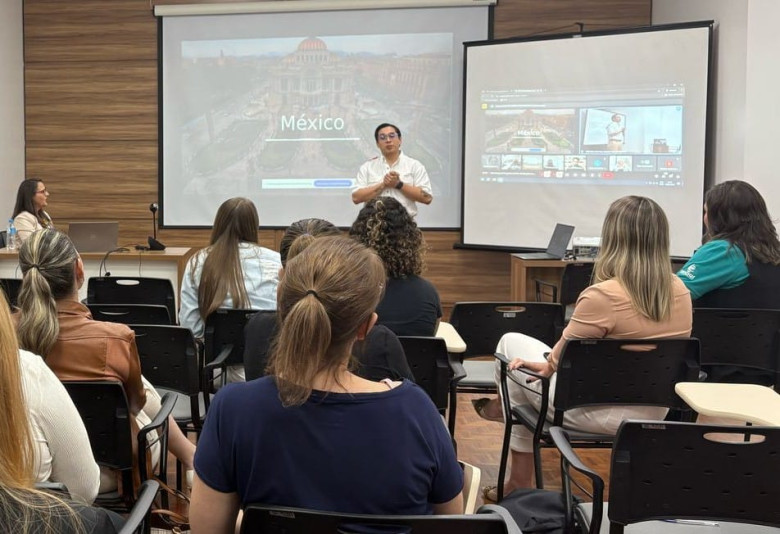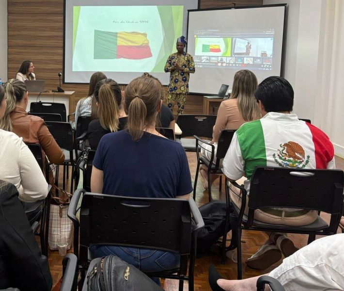O momento também contou com a participação dos estudantes estrangeiros, Georges Metonyekpon, do mestrado vindo de Benin, África e Edgar Noe Morelos Garcia do doutorado, de Tampico, México que apresentaram as características de seus países, destacando os desafios da área da saúde. A fala promoveu a troca de conhecimentos entre diferentes realidades culturais.