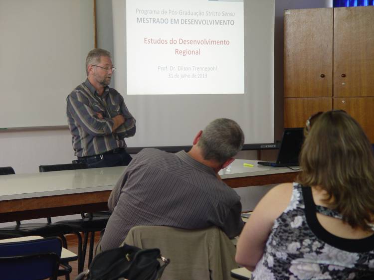 Os docentes e discentes do Programa de Mestrado em Desenvolvimento realizaram no último dia 31 de julho um Workshop denominado "Rumos do Desenvolvimento". Esse dia de trabalho aconteceu nas dependências do IRDeR e teve por objetivo, além de congregar professores e alunos num ambiente qualificado de retiro, fazer uma reflexão e discussão sobre a trajetória e as perspectivas do Programa de Mestrado.