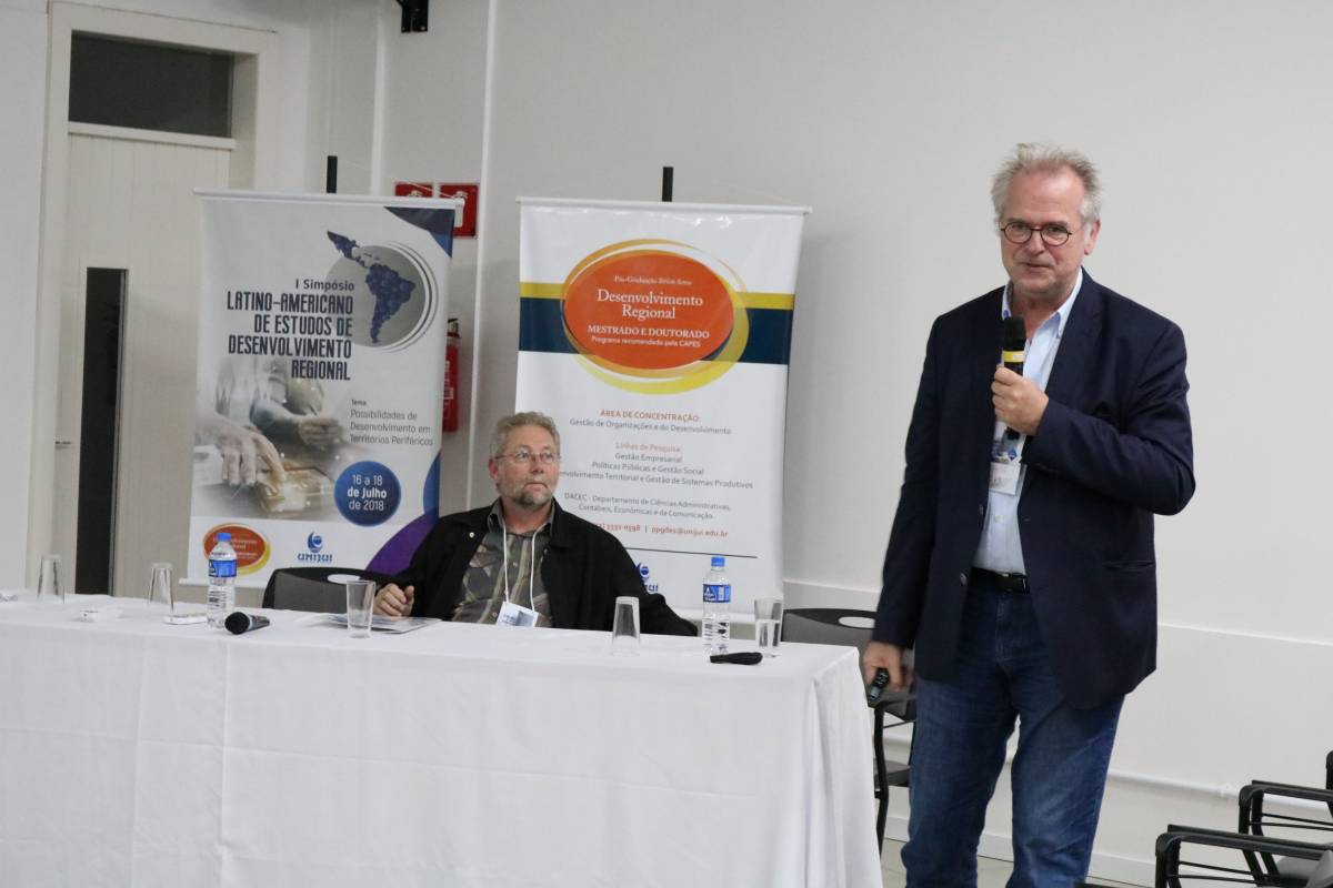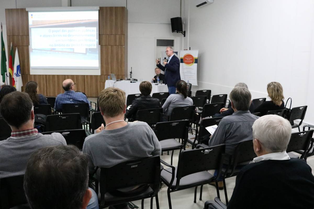 Para a conferência de abertura, o professor Dr. Martin Coy, da Universidade de Innsbruck, na Áustria, trabalhou o tema “O papel das políticas públicas e atores locais no desenvolvimento em territórios periféricos no âmbito da União Europeia”. O conferencista é diretor do Instituto de Geografia da Universidade de Innsbruck, com a qual a Unijuí mantém convênio institucional. O Instituto desenvolve uma série de pesquisas sobre o Brasil, especialmente sobre o meio urbano e o meio ambiente, contribuindo para a veiculação de imagens positivas e diferenciadas sobre o país.