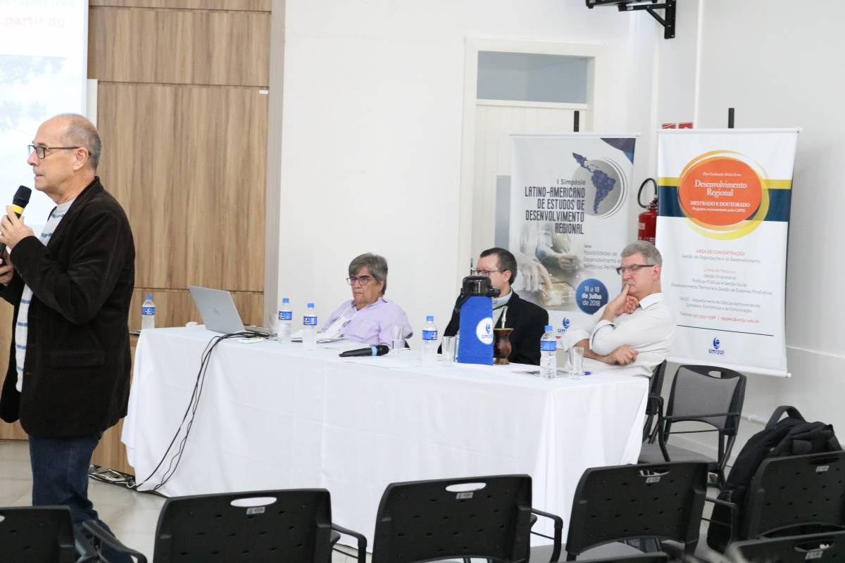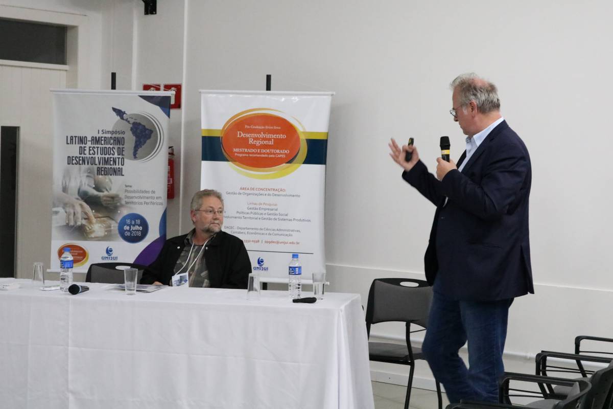 Com o tema “As Possibilidades de Desenvolvimento em Territórios Periféricos”, a Unijuí realizou o I Simpósio Latino-Americano de Estudos de Desenvolvimento Regional (I SLAEDR). O evento teve início na noite de segunda-feira, dia 16, e foi encerrado nesta quarta-feira, dia 18, no Centro de Eventos do Campus Ijuí, promovido pelo Programa de Pós-Graduação em Desenvolvimento Regional (mestrado e doutorado).
