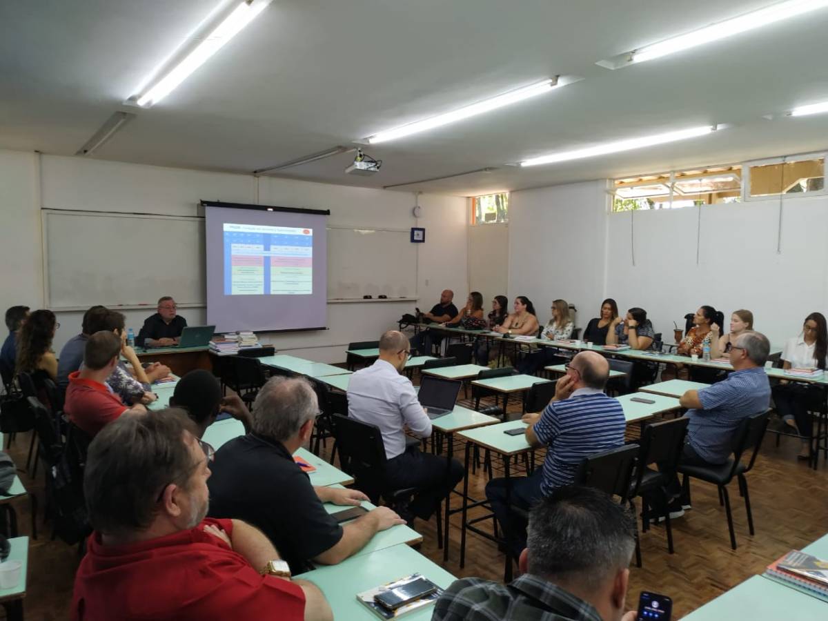Na segunda-feira, 02 de março, o Programa de Mestrado e Doutorado em Desenvolvimento Regional da Unijuí realizou a Aula Inaugural do primeiro semestre. A recepção iniciou no turno da manhã, na Sala A8/9 com a participação das turmas iniciantes e docentes. Na oportunidade, o professor Sérgio Luís Allebrandt, coordenador do Programa, fez a fala e dentre a programação da recepção, realizou a apresentação de discentes e docentes, detalhou a estrutura e funcionamento do PPGDR, além de esclarecer dúvidas.