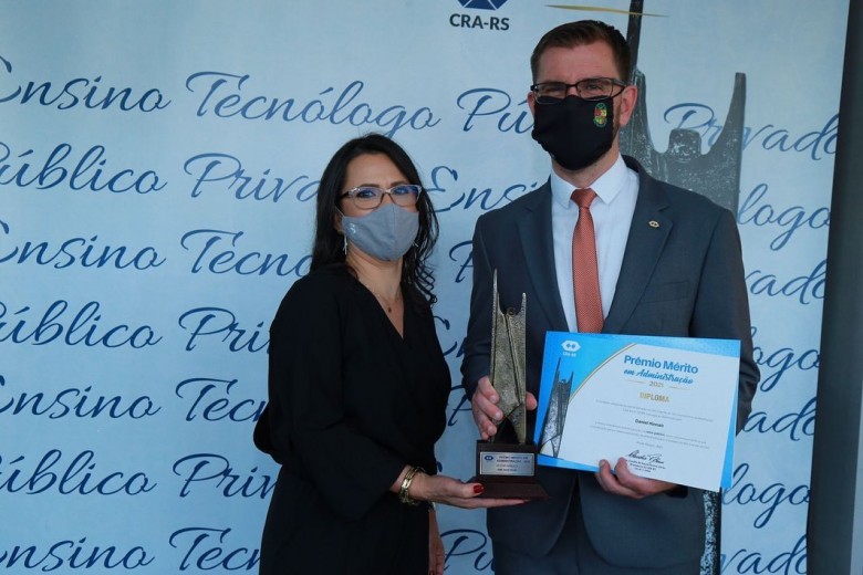 No último mês, o Conselho Regional de Administração do Rio Grande do Sul (CRA-RS) homenageou os profissionais que se destacaram no último ano com o Prêmio Mérito em Administração. A cerimônia da 34ª edição do prêmio ocorreu de maneira online e foi transmitida ao vivo pela página do Facebook da entidade. Entre os agraciados, esteve o egresso da Unijuí e atual prefeito de Panambi, Daniel Hinnah, na categoria Setor Público.