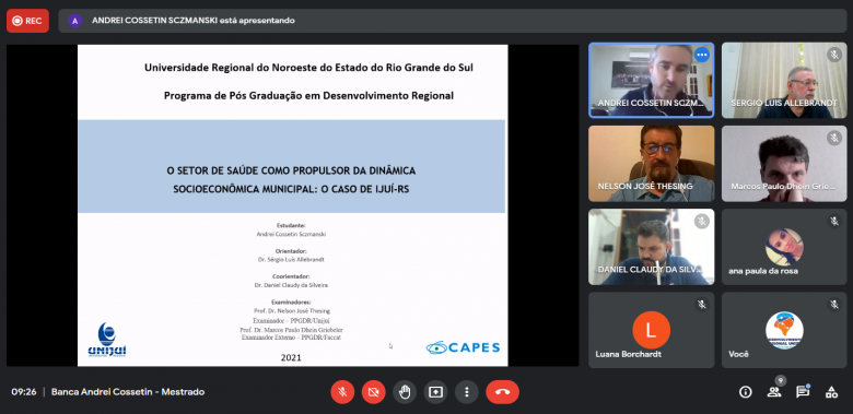 O prefeito de Ijuí, Andrei Cossetin, é o mais novo gestor público a concluir o Mestrado em Desenvolvimento Regional da Unijuí. Cossetin apresentou, no dia 21 de dezembro de 2021, sua dissertação intitulada “O Setor de Saúde como propulsor da Dinâmica Socioeconômica Municipal: o caso de Ijuí/RS”, com a orientação do professor dr. Sérgio Luís Allebrandt (PPGDR/Unijuí) e coorientação do professor dr. Daniel Claudy da Silveira (PPGGEO/URI). A banca foi composta ainda pelos professores doutores Nelson José Thesing - Examinador Interno (PPGDR/Unijuí) e Marcos Paulo Dhein Griebeler – Examinador Externo (PPGDR/Faccat).