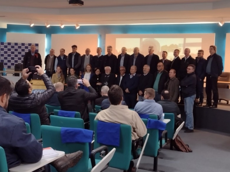 Rui Polidoro Pinto foi homenageado com a Medalha da 54ª Legislatura da Assembleia Legislativa pelo deputado estadual Elton Weber (PSB). A solenidade foi realizada nesta quinta-feira, 23 de junho, na Central Cooperativa Gaúcha Ltda. (CCGL), no município de Cruz Alta, e contou com a presença do professor Nelson Thesing e o doutorando Alceu Van Der Sand, do Programa de Pós-Graduação Stricto Sensu em Desenvolvimento Regional da Unijuí.