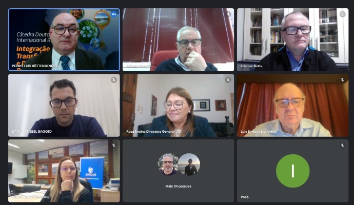 Aconteceu nesta sexta-feira, 30, o primeiro encontro virtual da 1ª Cátedra Doutoral da Rede de Cooperação Interuniversitária para o Desenvolvimento e a Integração Regional – RED Cidir, sobre Integração Transfronteiriça e Desenvolvimento Regional. As aulas serão realizadas online até o dia 8 de julho, em uma parceria entre Unijuí, Universidade Federal da Fronteira Sul (UFFS) e Universidad Gastón Dachary (UGD).
