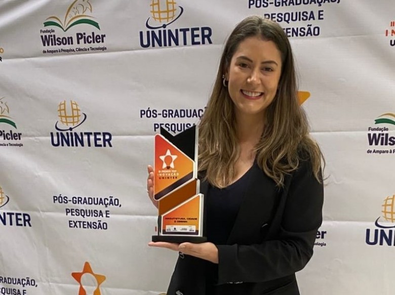 A estudante do curso de Doutorado do Programa de Pós-Graduação Stricto Sensu em Desenvolvimento Regional da Unijuí, Raíssa Schorn, recebeu um reconhecimento do seu trabalho ao vencer uma das categorias do Prêmio Top Inovação Uninter 2023.