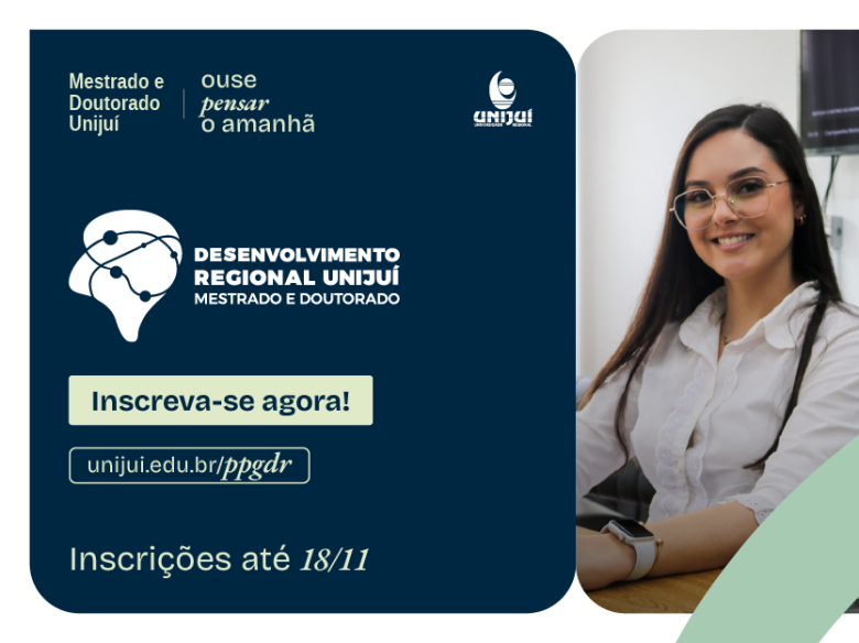 As inscrições para o Programa de Pós-Graduação Stricto Sensu em Desenvolvimento Regional (PPGDR), da Unijuí, estão abertas. Neste edital, estão sendo ofertadas 25 vagas para o Mestrado e 12 vagas para o Doutorado. Os candidatos podem realizar a inscrição até o dia 18 de novembro, de forma on-line, neste link.