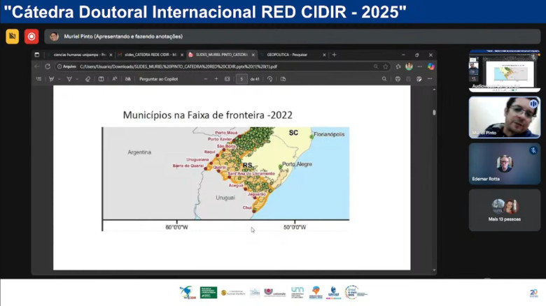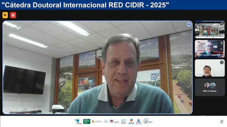 Com 193 participantes inscritos e matriculados, oriundos de seis países: Brasil, Argentina, Paraguai, Peru, Espanha, Angola e Estados Unidos, vinculados a 30 instituições de ensino superior, teve início, na última sexta-feira, 4 de julho, a 3ª edição da Cátedra Doutoral Internacional Red Cidir – 2025. Realizado pelo Programa de Pós-Graduação Stricto Sensu em Desenvolvimento Regional (PPGDR) da Unijuí, em parceria de outros cinco programas de pós-graduação, com o apoio institucional da Red de Cooperación Interuniversitaria para el Desarrollo e Integración Regional - Red Cidir.