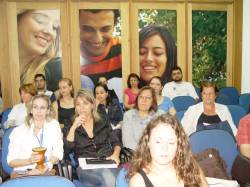 A recepção aos novos alunos prosseguiu com a apresentação dos professores e de experiências internacionais de mestrandos e doutorandos do programa.