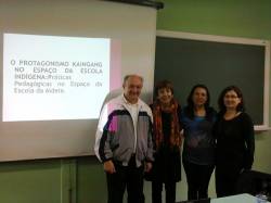 A educadora Kaingang Fátima Trindade do Amaral defendeu no dia 16 de outubro sua dissertação de mestrado intitulada “O Protagonismo Kaingang no Espaço da Escola Indígena: práticas pedagógicas no espaço da Escola da Aldeia”, sendo aprovada, com louvor, pela banca integrada pelos professores doutores Maria Aparecida Bergamasch, da Ufrgs; Noeli Valentina Weschenfelder, Anna Rosa Fontella Santiago, Walter Frantz e a orientadora Elza Maria Fonseca Falkembach, todos docentes da UNIJUÍ.