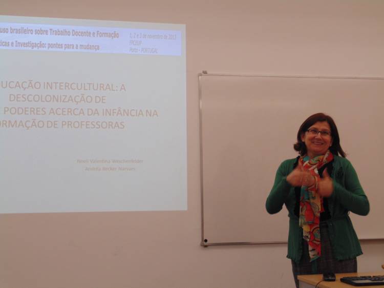 Integrantes do Programa de Pós-Graduação em Educação nas Ciências, as mestrandas Daiane Graciele Ribas Faoto e Priscilla Vianna Dias, juntamente com sua orientadora Noeli Valentina Weschenfelder participaram do Seminário Internacional de Educação e Formação Docente na Universidade de Psicologia do Porto, em Portugal, no período de 1º a 03 de novembro. Além de assistirem conferências com António Nóvoa, apresentaram trabalhos em relação às temáticas: “A proposta curricular na Educação de Jovens e Adultos: uma ferramenta inclusiva para a Educação Popular”, “Interculturalidade e educação: Descolonização epistêmica da infância na formação docente” e “A formação docente no Curso Normal e o cinema: imagens, inquietudes e narrativas”. No mesmo evento, Noeli Valentina Weschenfelder coordenou a mesa temática “Interculturalidade e Educação”.