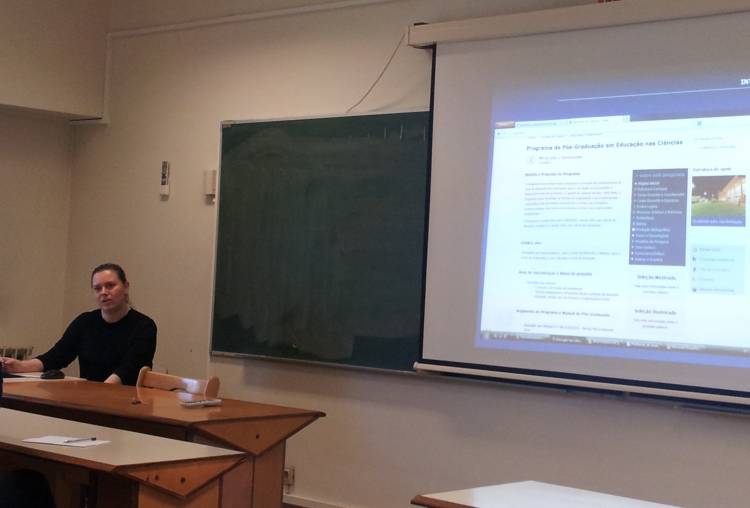 Sob a orientação do professor Otávio Maldaner, da UNIJUÍ, e co-orientação da professora Guilhermina Miranda, da Universidade de Lisboa, a doutoranda Fabiana apresentou, além de sua pesquisa, dados envolvendo a UNIJUÍ e o Programa de Pós-Graduação em Educação nas Ciências, assim como questões regionais/nacionais, a fim de que o grupo português tivesse informações mais detalhadas sobre sua pesquisa junto à Universidade de Lisboa.