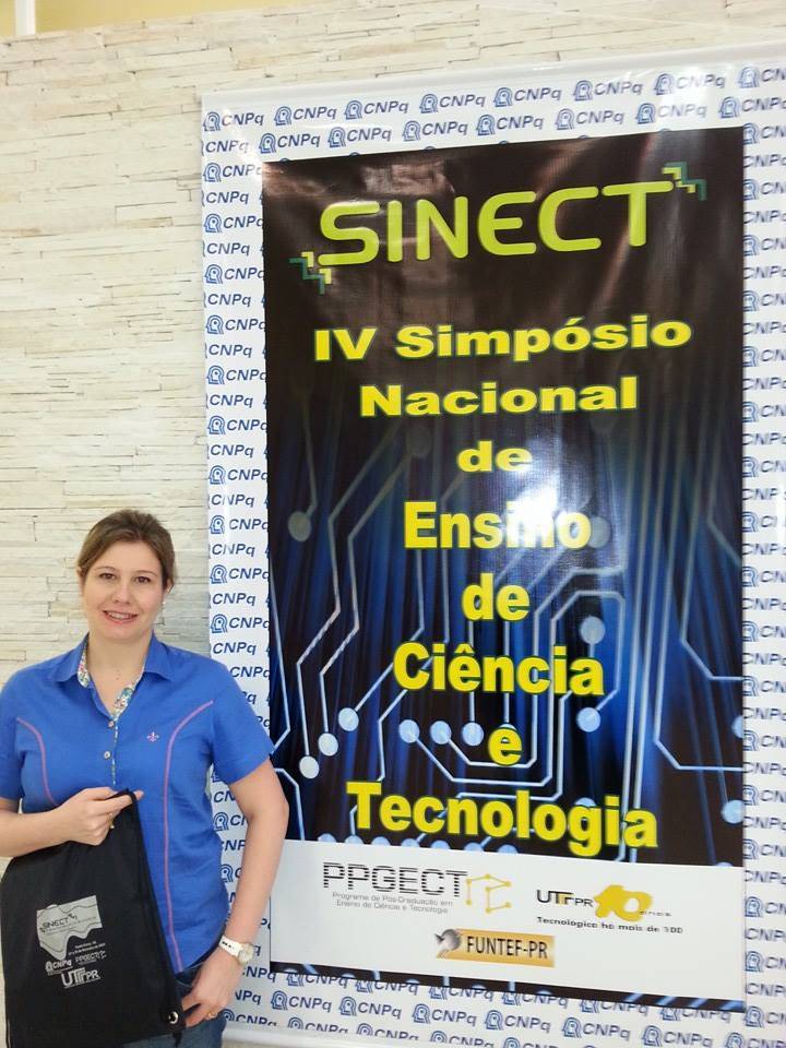 A mestranda Franciele Kollas, bolsista Fapergs do Programa de Pós-Graduação em Educação nas Ciências da UNIJUÍ participou, de 27 a 29 de novembro, na cidade de Ponta Grossa, Paraná, do IV Simpósio de Ensino de Ciência e Tecnologia – SINECT 2014.