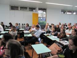 A professora Drª. Maria da Graça Simões de Carvalho, do Instituto de Educação da Universidade do Minho, de Braga (Portugal), abordou o planejamento da estrutura geral de uma dissertação, uma tese ou de artigos científicos. Também, trouxe aos estudantes à estruturação do conteúdo do texto em cada secção (introdução, métodos, resultados, discussão, conclusões, referências) e de aspetos relacionados com o estilo de escrita e a divulgação de trabalhos de investigação no campo da educação em ciências. Por meio de exercícios práticos, os participantes puderam ter conhecimentos dos processos de avaliação de artigos científicos por “peer reviewers”, ou pareceristas, bem como os mecanismos de análise bibliométrica dos pesquisadores, das revistas e dos países.
