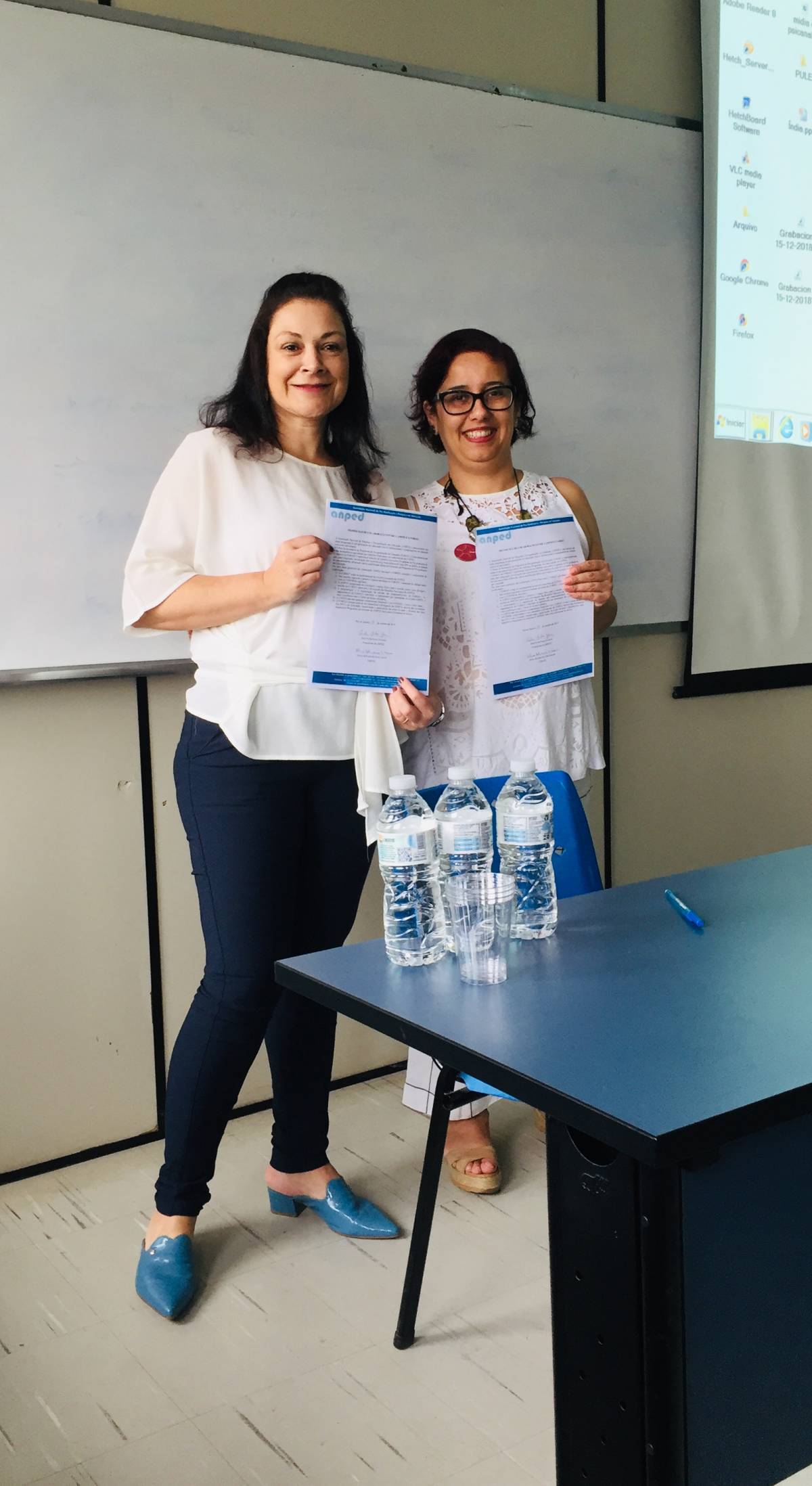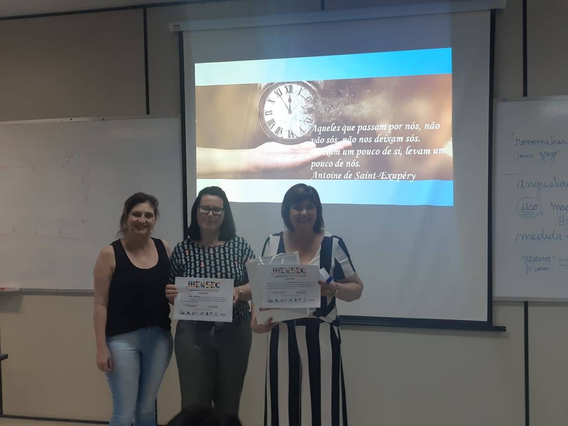 A professora Hedi Maria Luft e Profa. Inês Sostisso, egressa do mestrado em Educação nas Ciências, proferiram a palestra “Tempo é Vida”, dentro da Programação do III ENSEC (Encontro Nacional das(os) Secretárias(os) dos Programas de Pós-Graduação).