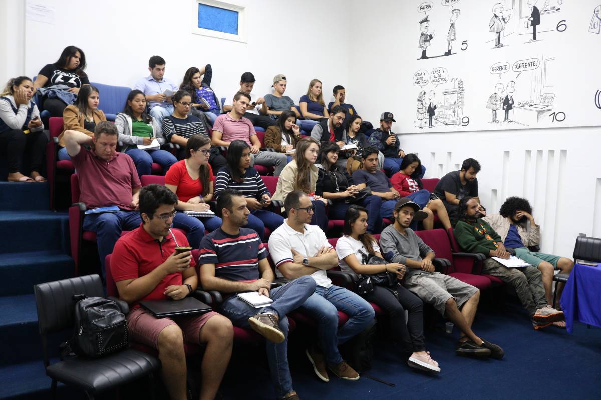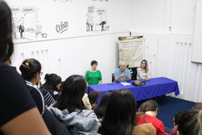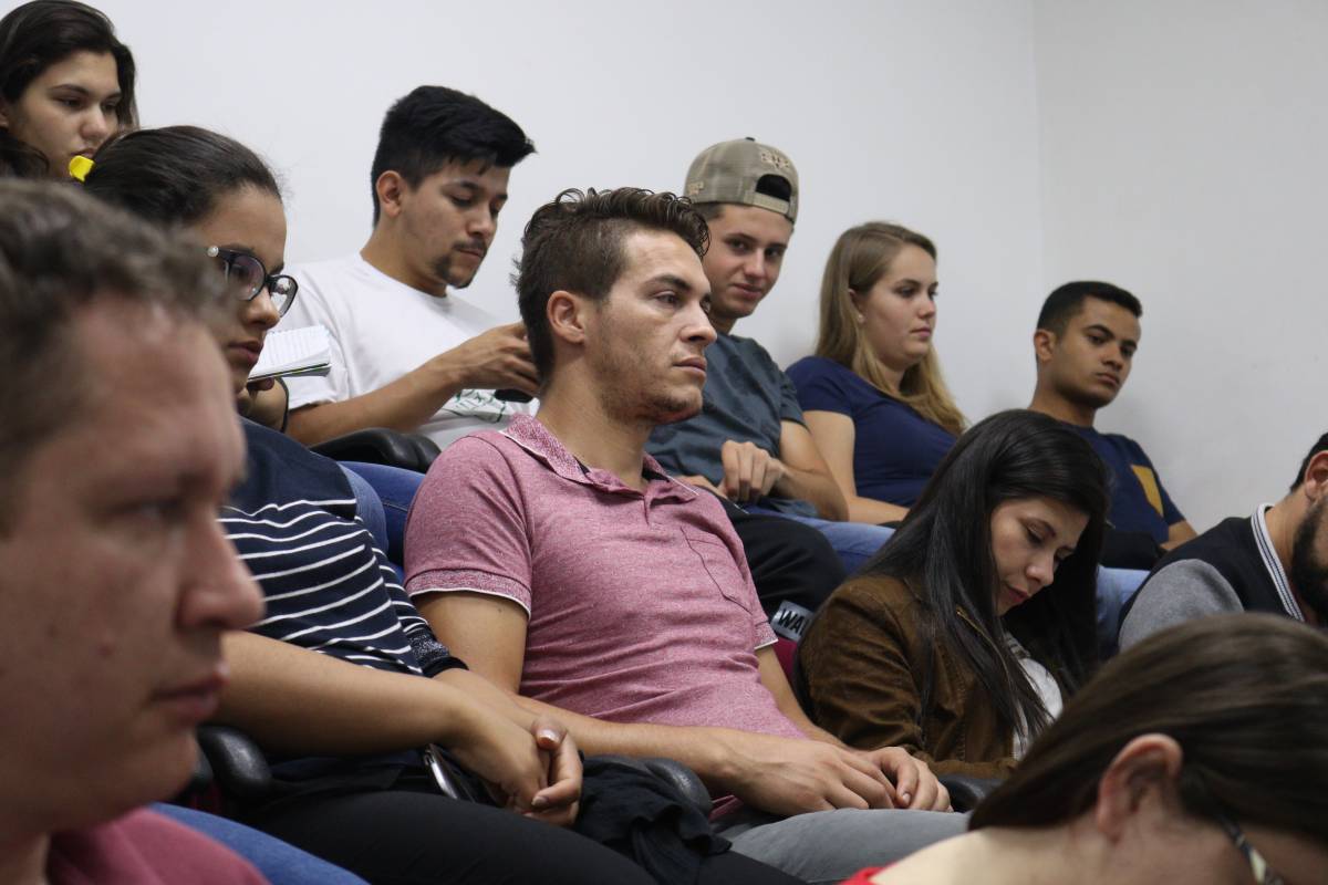 Durante a visita na Unijuí os estudantes conversaram com o professor Walter Frantz sobre a importância do cooperativismo e a importância da economia de base primária no noroeste gaúcho. A conversa aconteceu no prédio do Programa de Pós-Graduação em Educação nas Ciências da Unijuí.