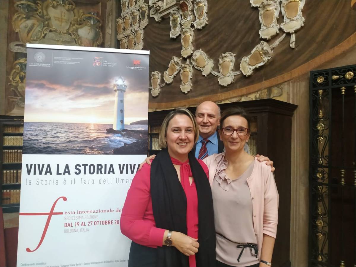 Em Bologna, Itália na UNIBÒ, o grupo participou de um conjunto de atividades programadas na XVI edição da Festa Internazionale della Storia 2019. Destaca-se o Passamano per San Luca, atividade que envolve a população local e visitantes e se caracteriza por ser um dos eventos mais significativo e esperados, que acontece há dezesseis anos e no qual as pessoas se unem para reviver a memória e representar como o Pórtico que leva à Basílica de San Luca foi construído. Em 17 de outubro de 1677 foram passados, de mão em mão, os materiais para a referida construção. https://site.unibo.it/festadellastoria/it/passamano-per-san-luca. Outro evento significativo é a premiaçãointernazionale "il portico d'oro - Jacques Le Goff", que, neste ano, foi concedido ao Diretor da National Geographic Itália, Marco Cattaneo, o qual relatou, em seu discurso, o percurso percorrido pela revista e suas contribuições com imagens e como fonte de pesquisa histórica, https://site.unibo.it/festadellastoria/it/premi/premio-le-goff1.