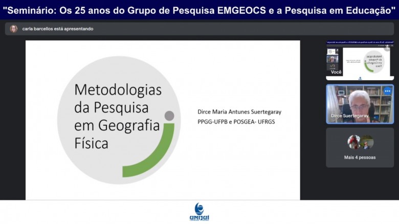 Ocorreu nesta quarta-feira, 24 de novembro, a última conferência do Seminário Internacional em comemoração aos 25 anos do Grupo de Pesquisa Ensino e Metodologias em Geografia e Ciências Sociais (EMGEOCS). O evento teve início no primeiro semestre de 2021, de forma online, com transmissão pelo canal da Unijuí no Youtube.