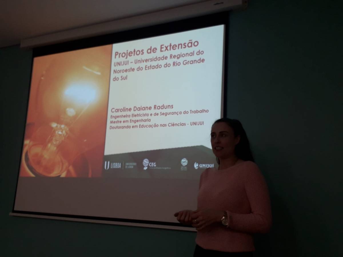 Entre os dias 06 de janeiro de 2020 e 02 de fevereiro de 2020, a doutoranda Caroline Daiane Raduns, do Programa de Pós-Graduação Stricto Sensu em Educação nas Ciências, realizou um estágio de doutorado sanduíche na Universidade de Lisboa – Lisboa/Portugal. Caroline tem como orientadora a professora Dra. Helena Copetti Callai, da Linha de Pesquisa 3.
