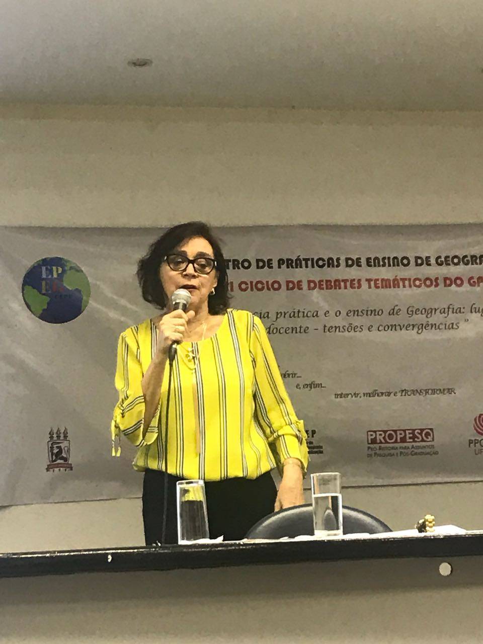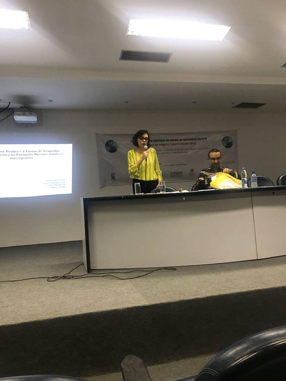 Em Recife na Universidade Federal de Pernambuco – UFPE- proferindo a conferencia de encerramento: A CONSCIENCIA PRÁTICA E O ENSINO DE GEOOGRAFIA: LUGARES DA PRÁTICA NA FORMAÇÃO DOCENTE – TENSÕES E CONVERGÊNCIAS do III Encontro de Práticas de Ensino de Geografia da UFPE e II ciclo de debates temáticos GPCI. No mesmo evento, realizado de 27 a 29 de agosto de 2018, realizou a participação também como debatedora nos GT de apresentação de trabalho bem como nas demais atividades.