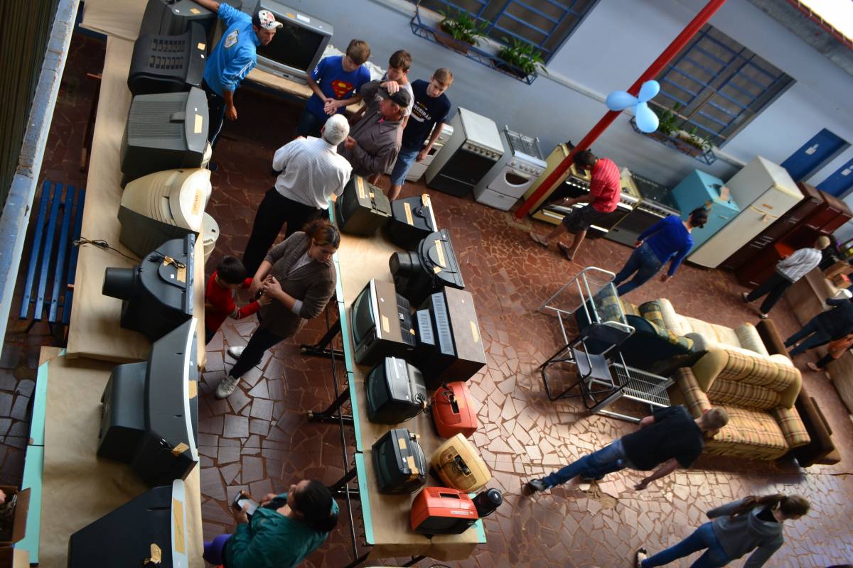 Assim, foram coletados diferentes tipos de materiais, desde roupas e calçados, como eletrodomésticos, móveis, brinquedos, livros, bijuterias, pneus, materiais de construção civil, entre tantos outros. Então, após a coleta, foi organizado a feira na escola, e posteriormente, num sábado a venda destes materiais coletados que antes foram limpos, organizados e consertados na medida do possível.