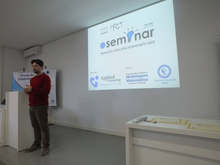 No dia 15 de Junho, nos turnos da manhã e tarde, aconteceu o III Seminário de Formação Científica e Tecnológica (SFCT), organizado pelo Grupo de Pesquisa em Computação Aplicada (GCA), com o apoio do Programa de Pós-Graduação em Modelagem Matemática e do curso de Ciência da Computação da UNIJUÍ.