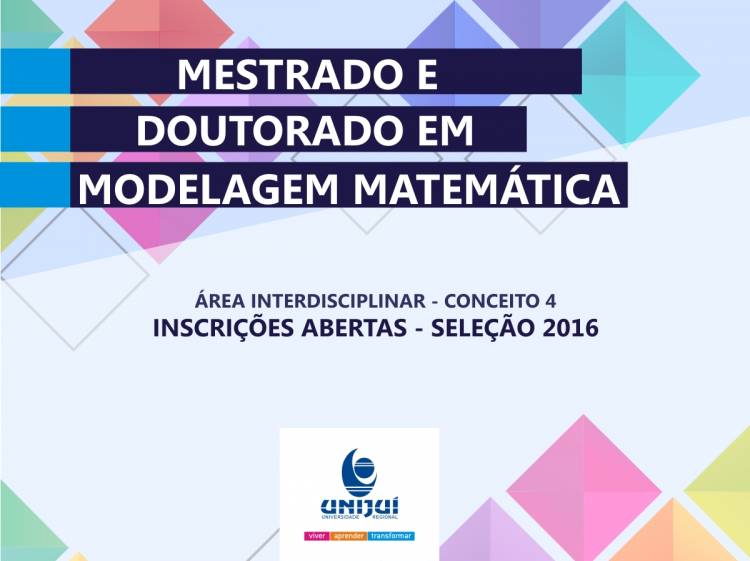Inscrições para o Programa de Pós-Graduação – Mestrado e Doutorado em Modelagem Matemática, ofertado pela UNIJUÍ, tem inscrições até o dia 15 de novembro.