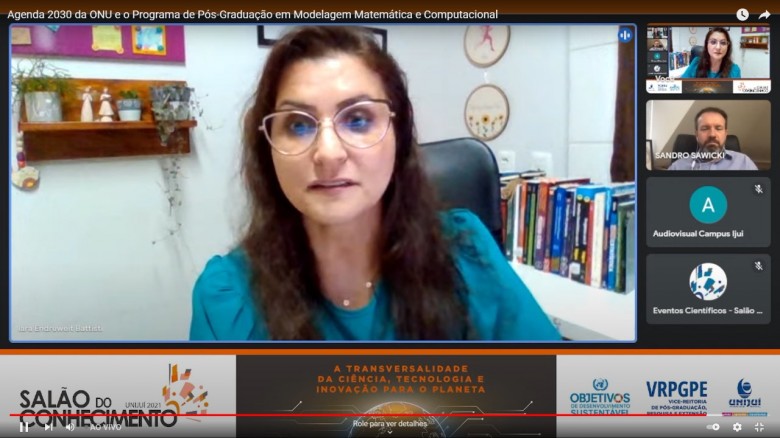 Dando sequência aos painéis apresentados no Salão do Conhecimento 2021, ocorreu na tarde desta sexta-feira, 29 de outubro, promovida pelo Programa de Pós-Graduação Stricto Sensu em Modelagem Matemática e Computacional da Unijuí, a palestra “Agrotóxicos e a saúde humana: uma abordagem envolvendo a Modelagem Estatística”, abordada pela professora da Universidade Federal da Fronteira Sul (UFFS), campus Cerro Largo, Iara Denise Endruweit Battisti. A condução da fala ficou sob orientação do professor Sandro Sawicki, da Unijuí.