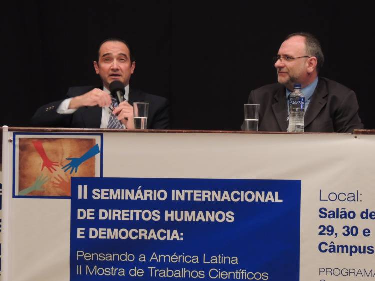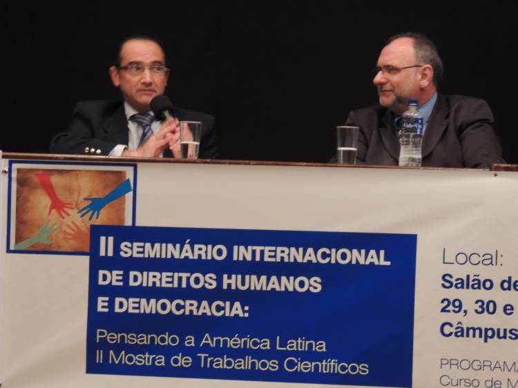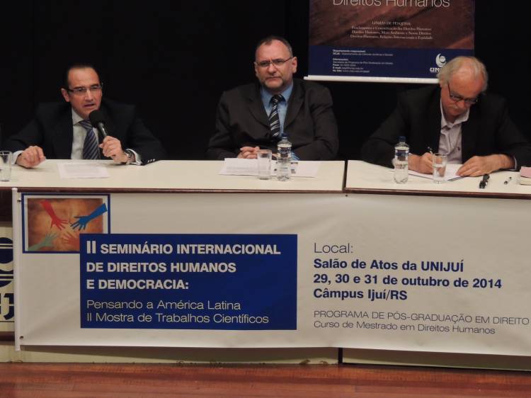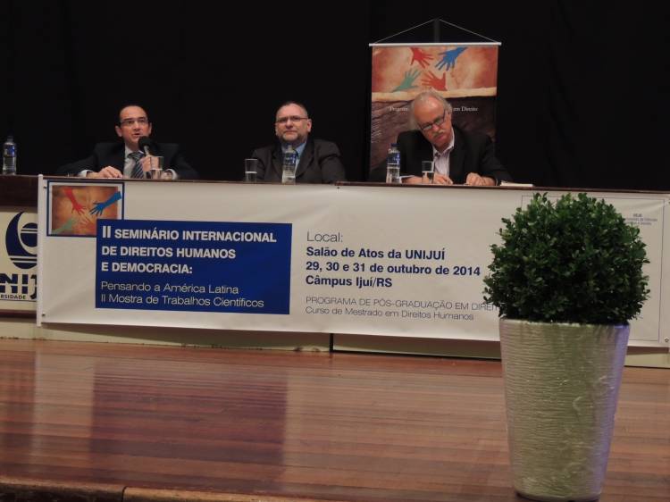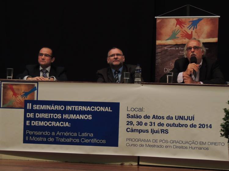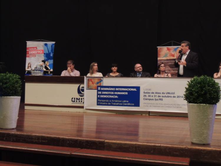 Na noite desta quarta-feira, o Programa de Mestrado em Direitos Humanos da UNIJUÍ realizou a abertura do II Seminário Internacional em Direitos Humanos e Democracia, no Salão de Atos do Câmpus Ijuí. Este ano o evento desenvolverá a temática "Pensando a América Latina".