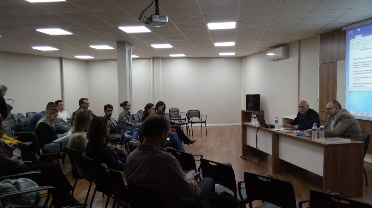 O PPGD – Programa de Mestrado em Direito da Unijuí – Mestrado em Direitos Humanos – realizou quarta, 16/05, às 8h30min no Auditório 100 do Centro de Eventos da Unijuí, a sua Aula Magna, como forma de receber oficialmente os novos mestrandos do Programa. O Professor italiano-brasileiro Giuseppe Tosi, da Universidade Federal da Paraíba, foi convidado para apresentar e discutir a temática “Liberalismo, Democracia e Direitos Humanos”.
