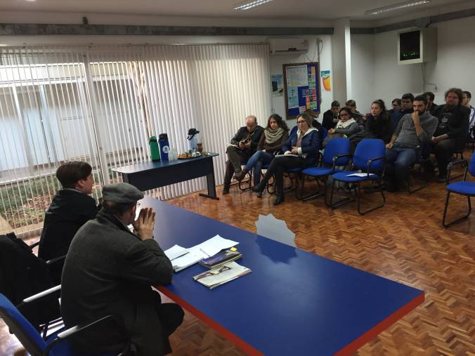 O Professor Paulo Fensterseifer, ao realizar a mediação da conversa, provocou o debate sobre a crítica à modernidade. “Temos muitas conquistas que procederam desse movimento e nos permitem ter uma relação mais crítica a partir desses elementos”. E complementou sua fala com a pergunta, instigando os presentes: “como fazer o mundo comum com os ganhos de 68?”