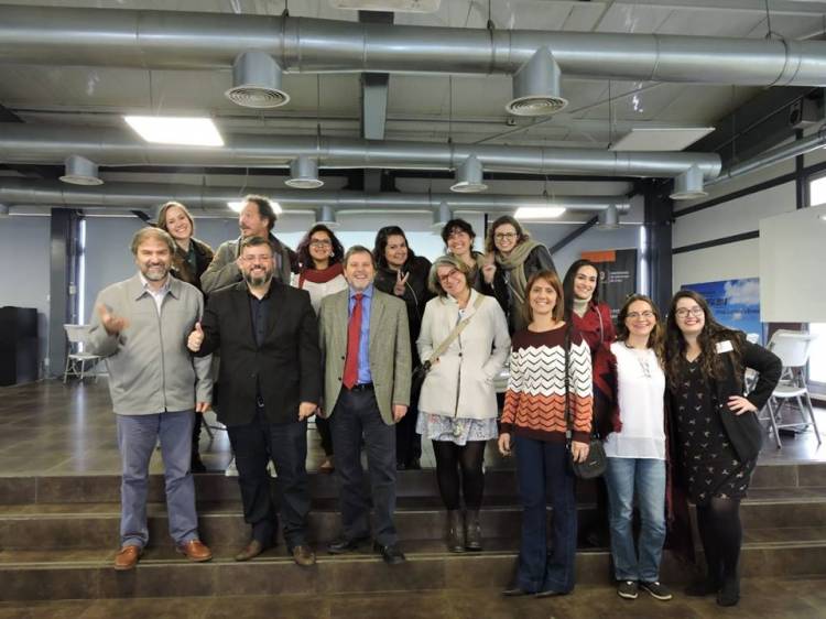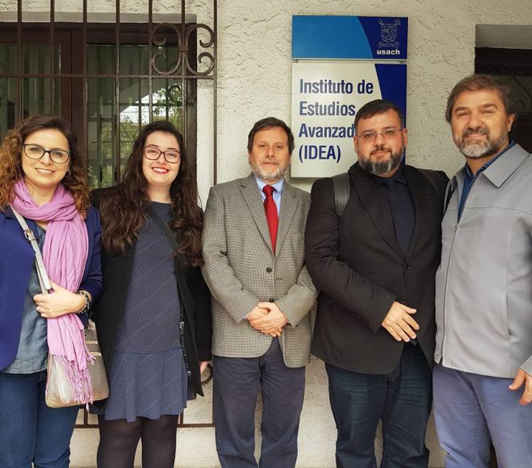 Reunião de Planificação. Instituto de Estudios Avanzados - USACH Chile. Fernando Estenssoro (Director IDEA), Jerônimo Tybusch (UFSM), Daniel Cenci (UNIJUI), Francielle Benini Agne Tybusch (UFN) e Anna Paula Bagetti Zeifert (UNIJUI).