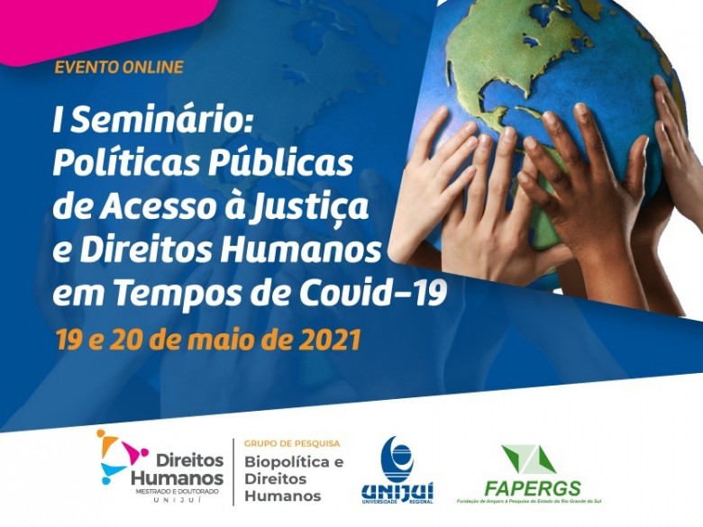 Estão abertas as inscrições para o I Seminário: Políticas Públicas de Acesso à Justiça e Direitos Humanos em Tempos de Covid-19, promovido pelo Grupo de Pesquisa Biopolítica e Direitos Humanos, vinculado ao Programa de Pós-Graduação Stricto em Direitos Humanos da Unijuí, com o apoio da Fundação de Amparo à Pesquisa do Estado do Rio Grande do Sul (Fapergs). O evento acontecerá nos dias 19 e 20 de maio, no turno da tarde, de forma online.