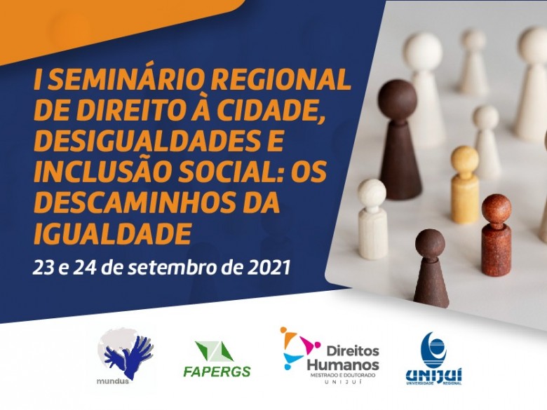 Na quinta e sexta-feira, dias 23 e 24 de setembro, irá ocorrer o I Seminário Regional de Direito à Cidade, Desigualdades e Inclusão Social: os descaminhos da igualdade. O evento é promovido pelo Programa de Pós-Graduação em Direitos Humanos da Unijuí, por meio do Grupo de Pesquisa Direitos Humanos, Governança e Democracia (GP Mundus), com apoio da Fundação de Amparo à Pesquisa do Estado do Rio Grande do Sul (Fapergs).