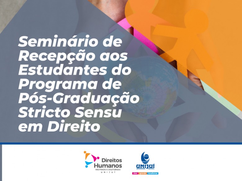Nos dias 9 e 10 de março, será realizado o Seminário de Recepção aos Estudantes do Programa de Pós-Graduação Stricto Sensu em Direito (PPGD). O evento acontece de forma presencial, mas também contará com transmissão pelo Youtube e Google Meet. As inscrições são gratuitas e podem ser realizadas em unijui.edu.br/eventos.