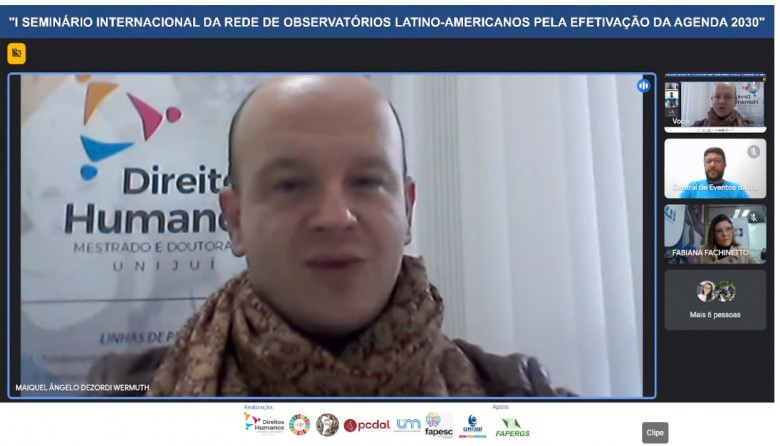 Na manhã desta quarta-feira, 14 de junho, aconteceu a abertura do I Seminário Internacional da Rede de Observatórios Latino-Americanos pela Efetivação da Agenda 2030. O evento é realizado de forma online até esta quinta-feira, dia 15, a partir de uma promoção da Fundação de Amparo à Pesquisa do Estado do Rio Grande do Sul (Fapergs), do Programa de Pós-Graduação Stricto Sensu em Direito (PPGD) da Unijuí, do Observatório de Direitos Humanos e do Grupo de Pesquisa em Direitos Humanos, Justiça Social e Sustentabilidade da Universidade.