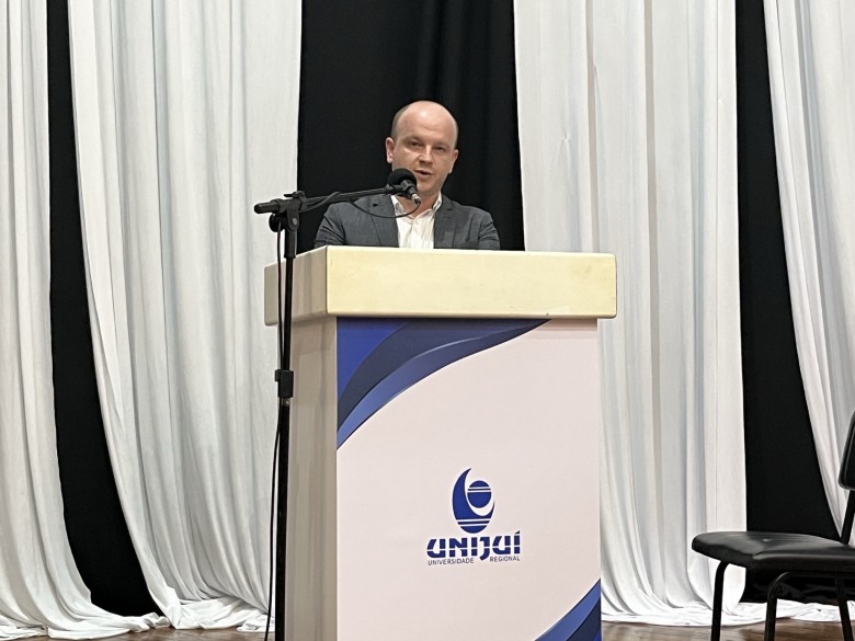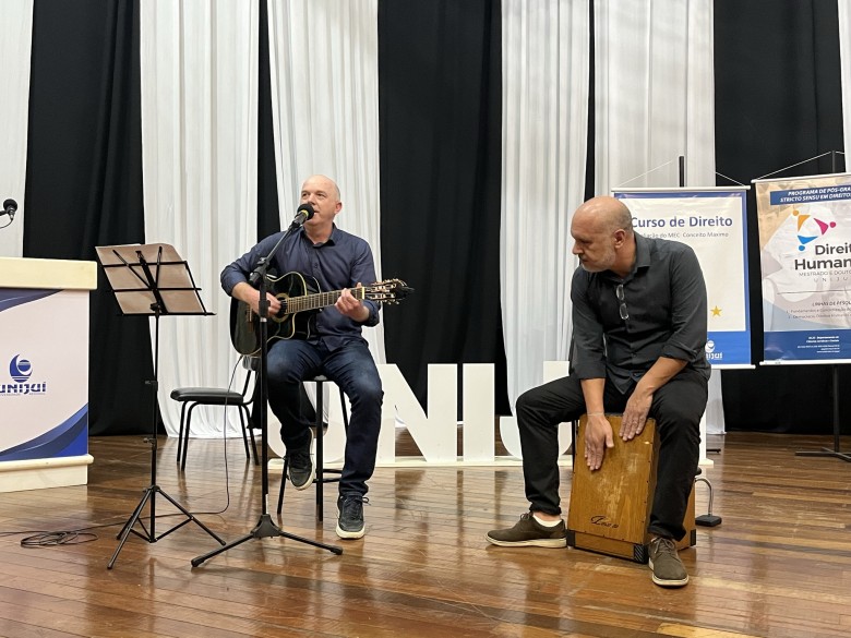 Na noite desta quinta-feira, 4 de agosto, aconteceu no Salão de Atos da Unijuí a aula inaugural do curso de graduação em Direito e também do Programa de Pós-Graduação Stricto Sensu em Direito (PPGD) da Unijuí. O evento contou inicialmente com a apresentação musical do professor do curso de Direito, Joaquim Gatto, e do defensor público, André Girotto, antecedendo a abertura oficial e o painel da noite, Teorias Sociológicas e Inteligência Artificial.