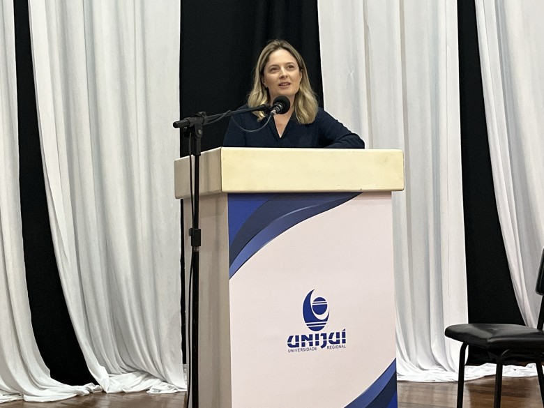 Participando de sua primeira aula inaugural como coordenadora do curso de Direito do campus Ijuí, a professora Francieli Formentini destacou que o evento foi pensado com muito carinho pela equipe de professores, como forma de marcar este segundo semestre, que traz uma nova jornada, com novos desafios e aprendizados aos acadêmicos. “Retornamos com a discussão de uma importante temática, que é a Inteligência Artificial, que vem interferindo intensamente em nossas relações. E nós, como juristas, devemos refletir sobre ela, analisando seus reflexos e os impactos em nossas vidas”, disse.
