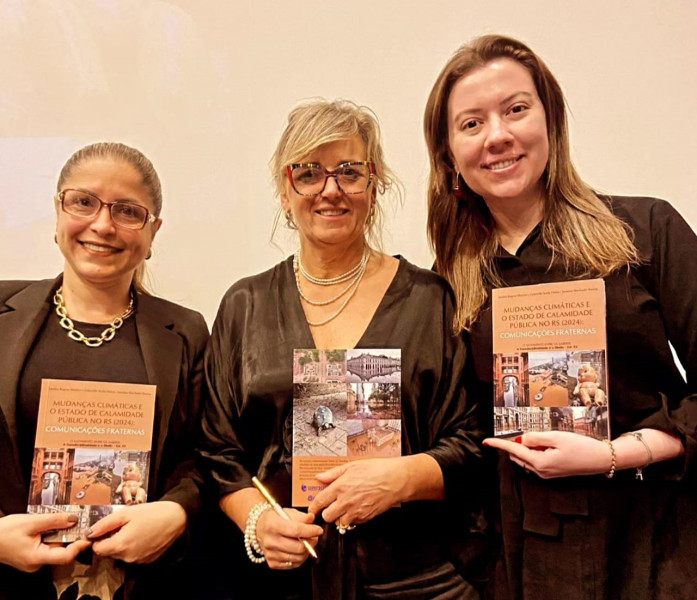 No dia 10 de outubro, junto à Embaixada do Brasil em Roma, na Itália, aconteceu o lançamento do livro “Mudanças Climáticas e o estado de calamidade pública no RS (2024): comunicações fraternas”. A obra foi organizada pelas professoras doutoras do curso de graduação em Direito e do Programa de Pós-Graduação Stricto Sensu em Direito (PPGD) da Unijuí, Janaína Machado Sturza e Gabrielle Scola Dutra, e pela professora doutora da Unilasalle, Sandra Regina Martini.